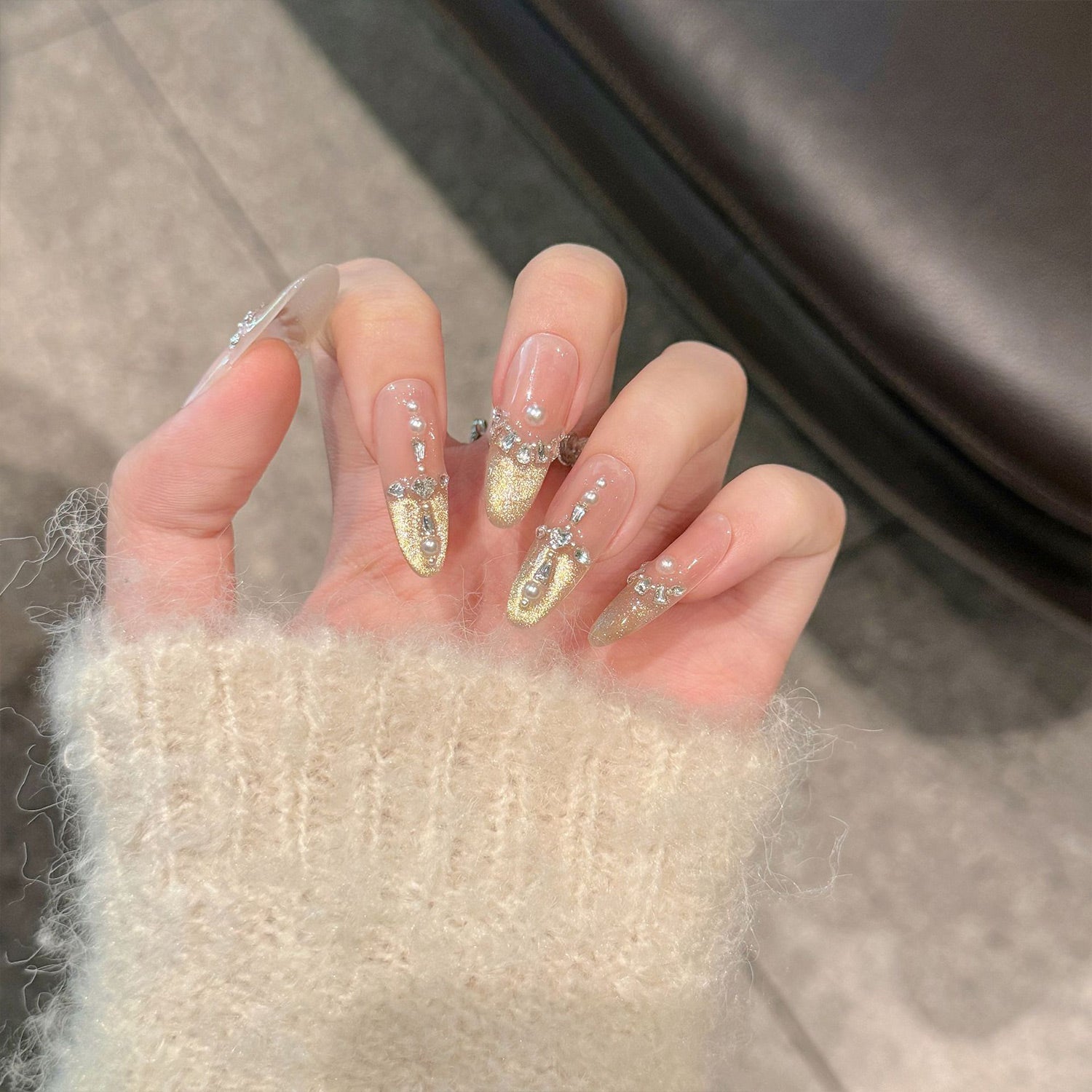 Align the press-on nail with your cuticle, then press down firmly for 10–15 seconds.