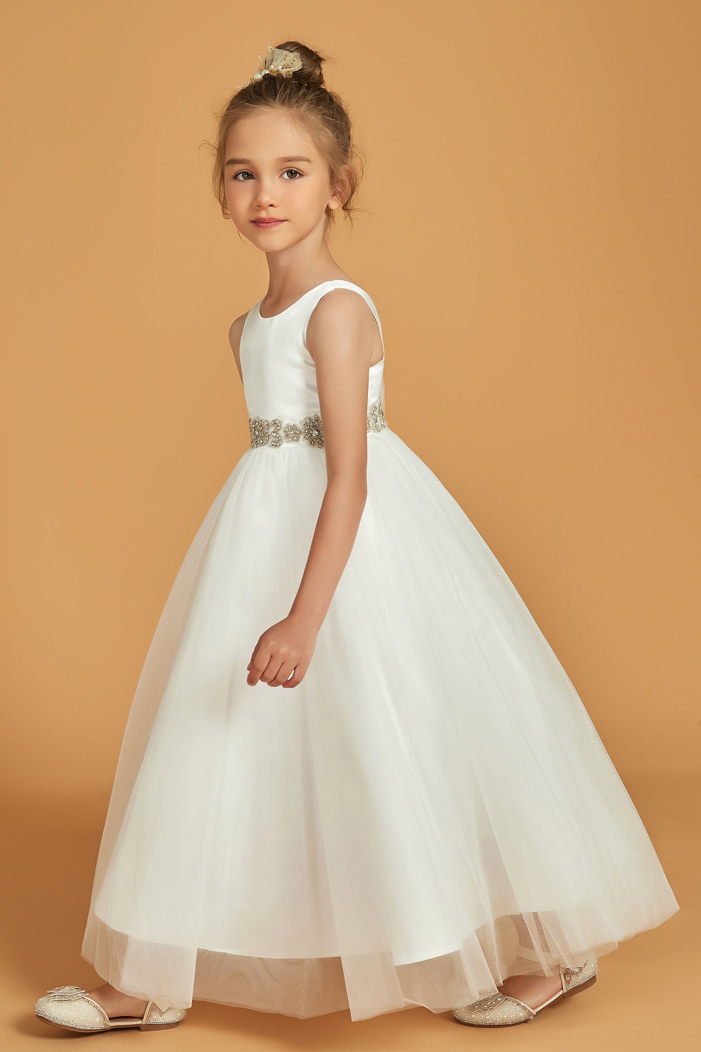 Long Satin Flower Girl Dress Sleeveless For Wedding Day