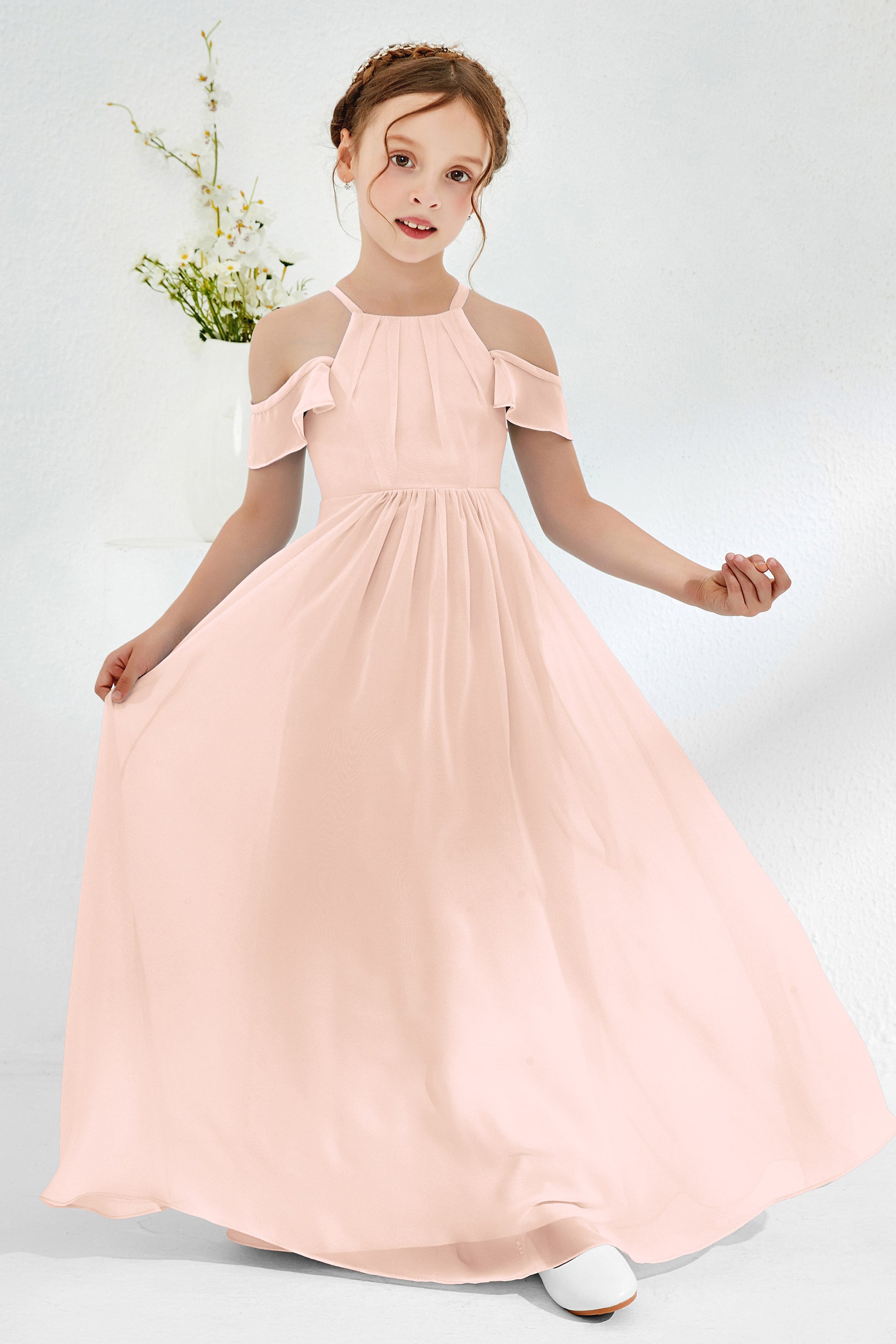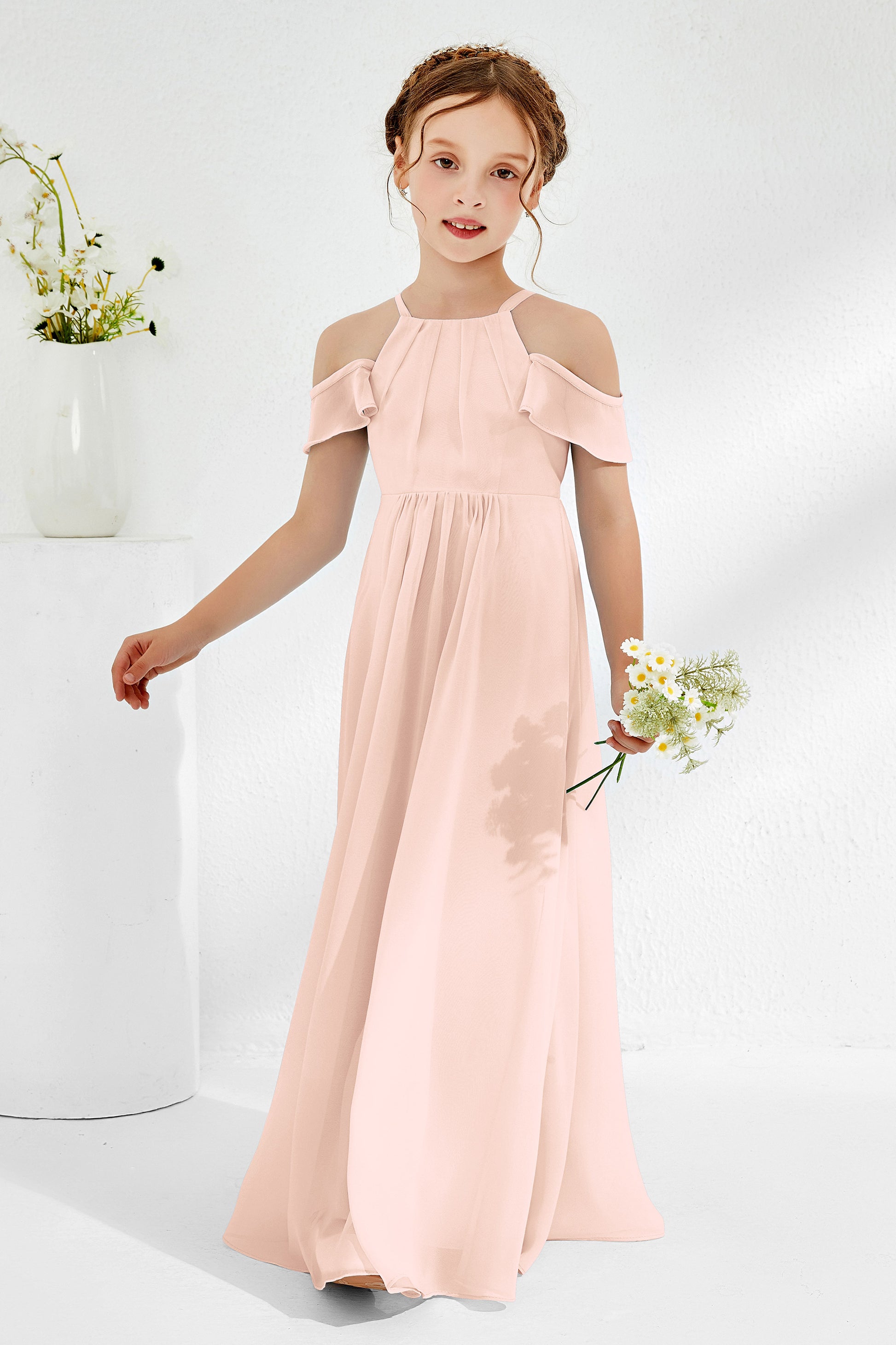 Pleated Flutter Sleeves Chiffon Junior Bridesmaid Dress