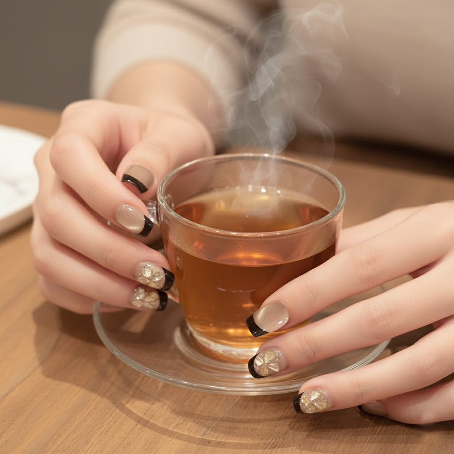 Align the press-on nail with your cuticle, then press down firmly for 10–15 seconds.