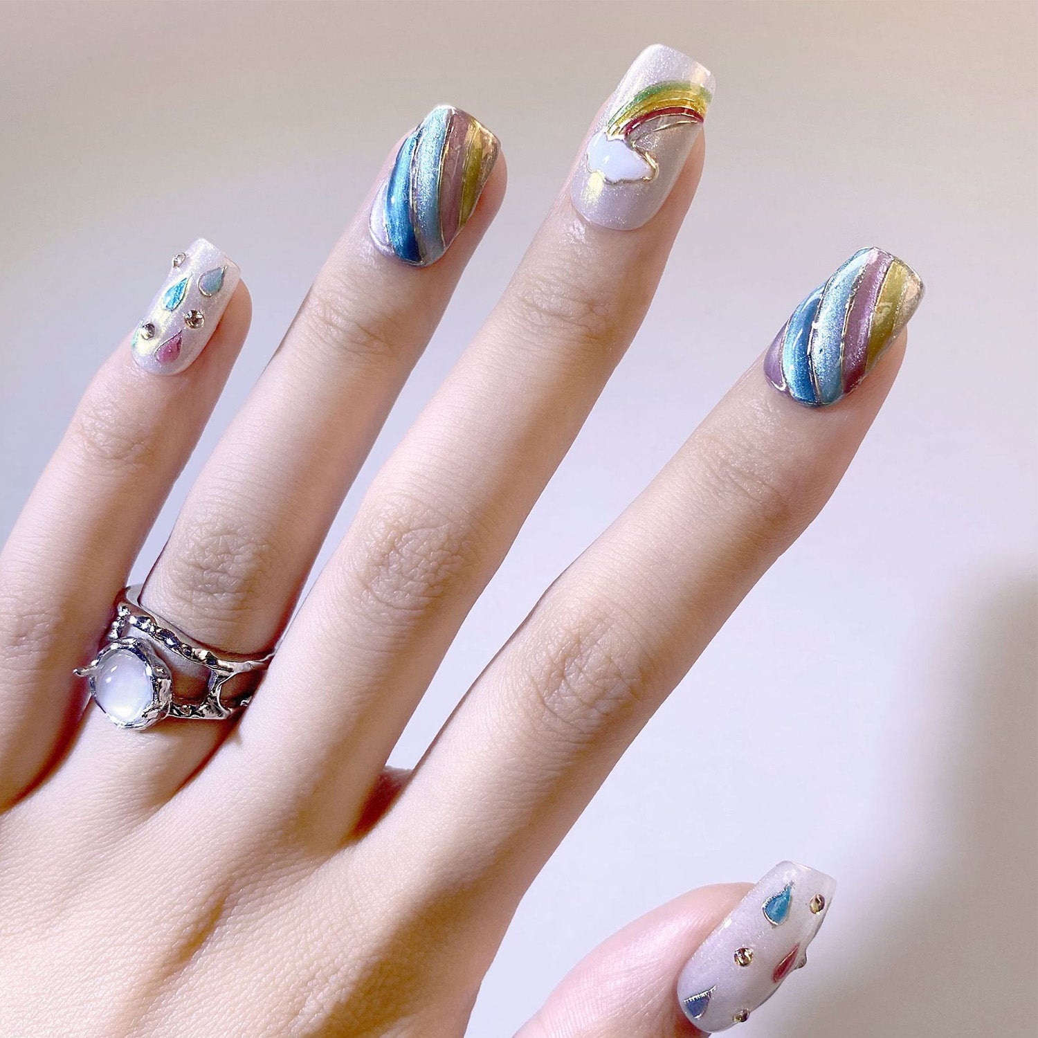 Nail Glue: Apply a thin layer to your natural nail and artificial nail, align, press for 10-15s.