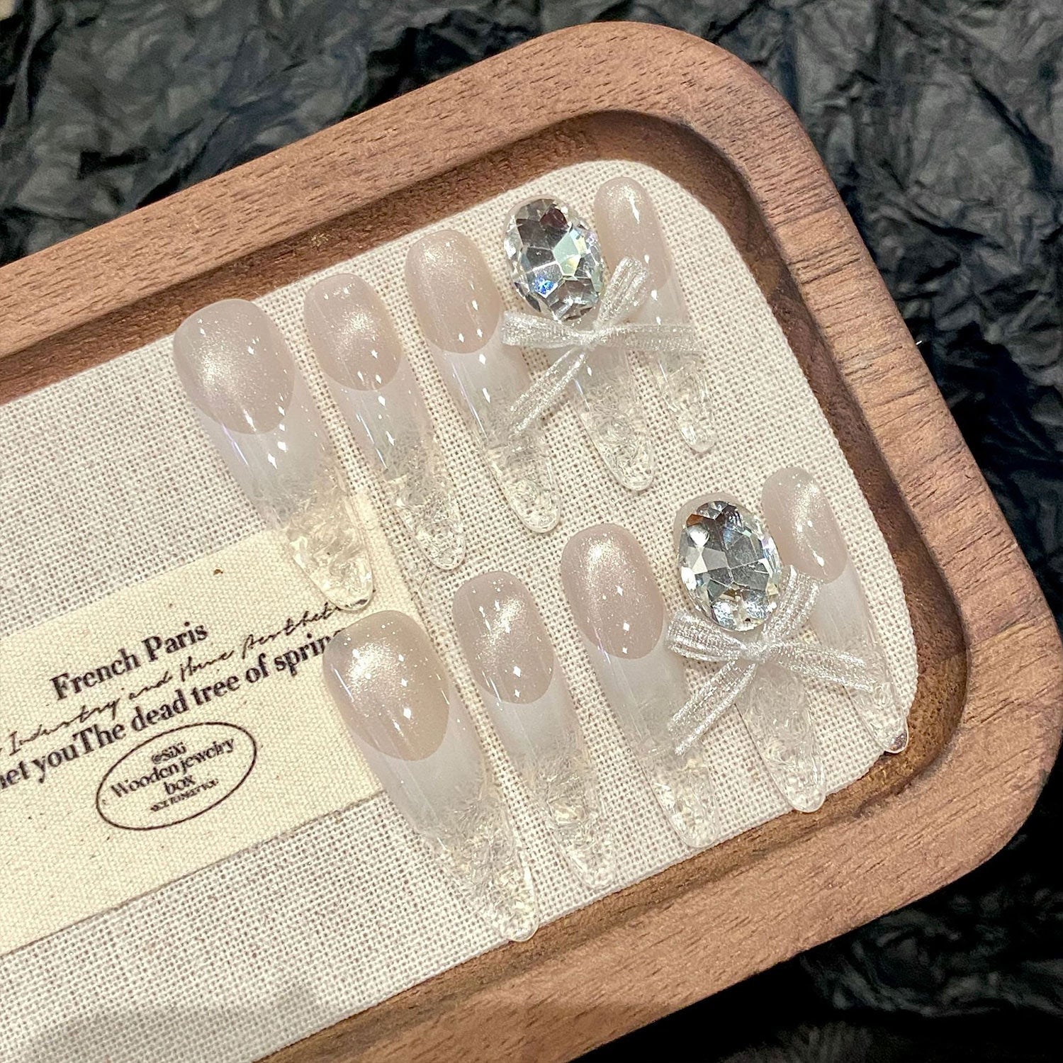 Nail Glue: Apply a thin layer to your natural nail and artificial nail, align, press for 10-15s.