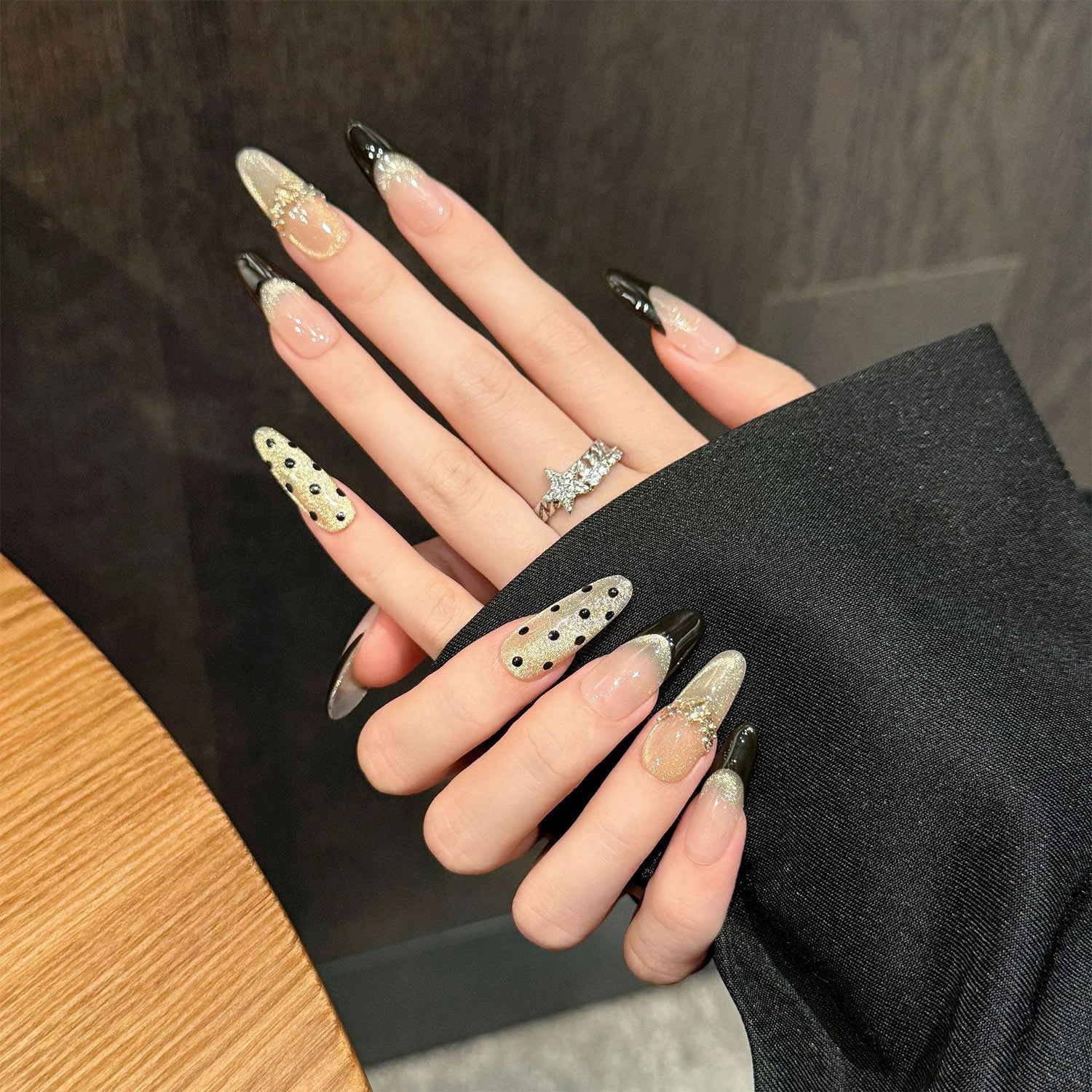 Perfect for everyday wear or special occasions, this design combines sparkling elegance with black polka dots, creating an eye-catching look.