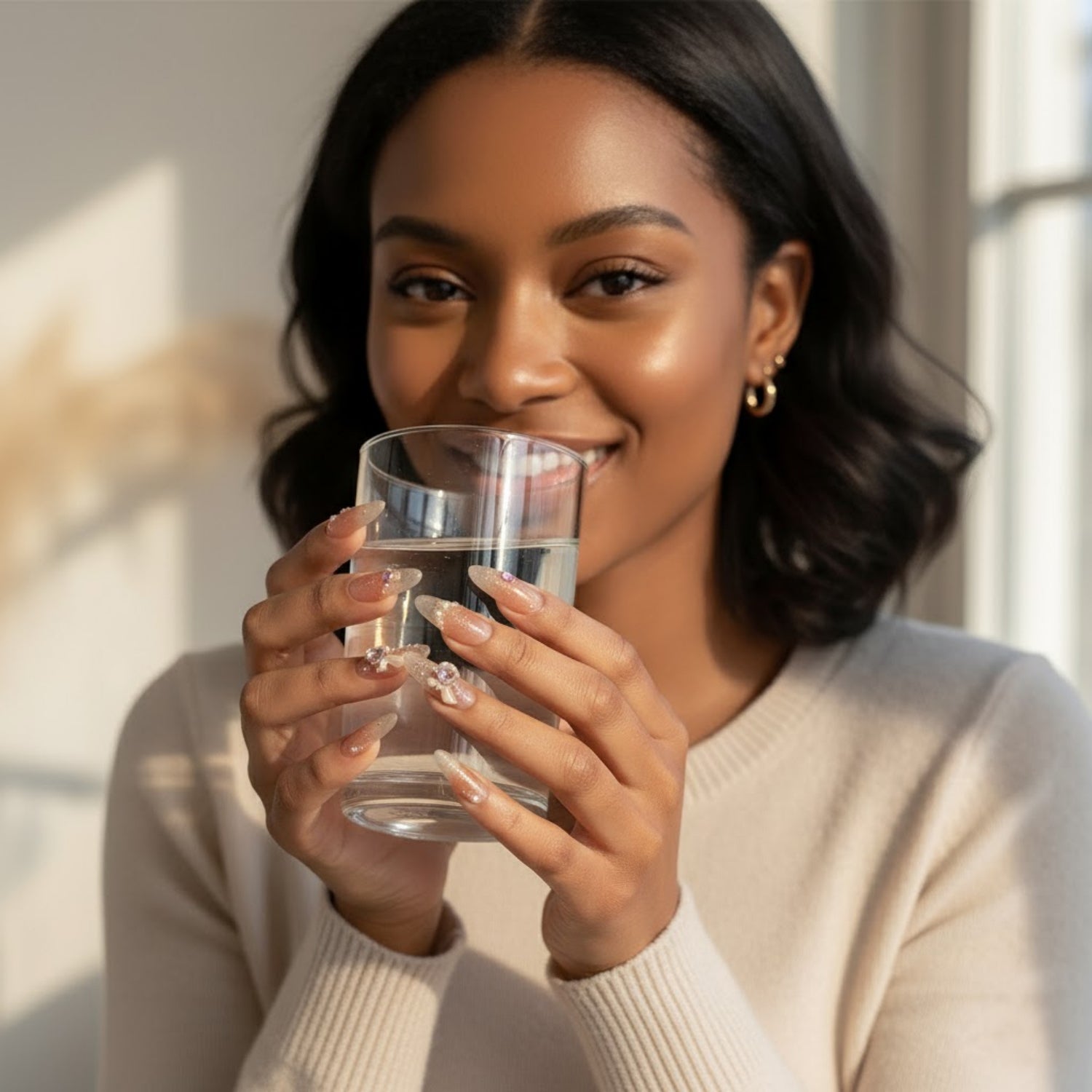 Align the press-on nail with your cuticle, then press down firmly for 10–15 seconds.