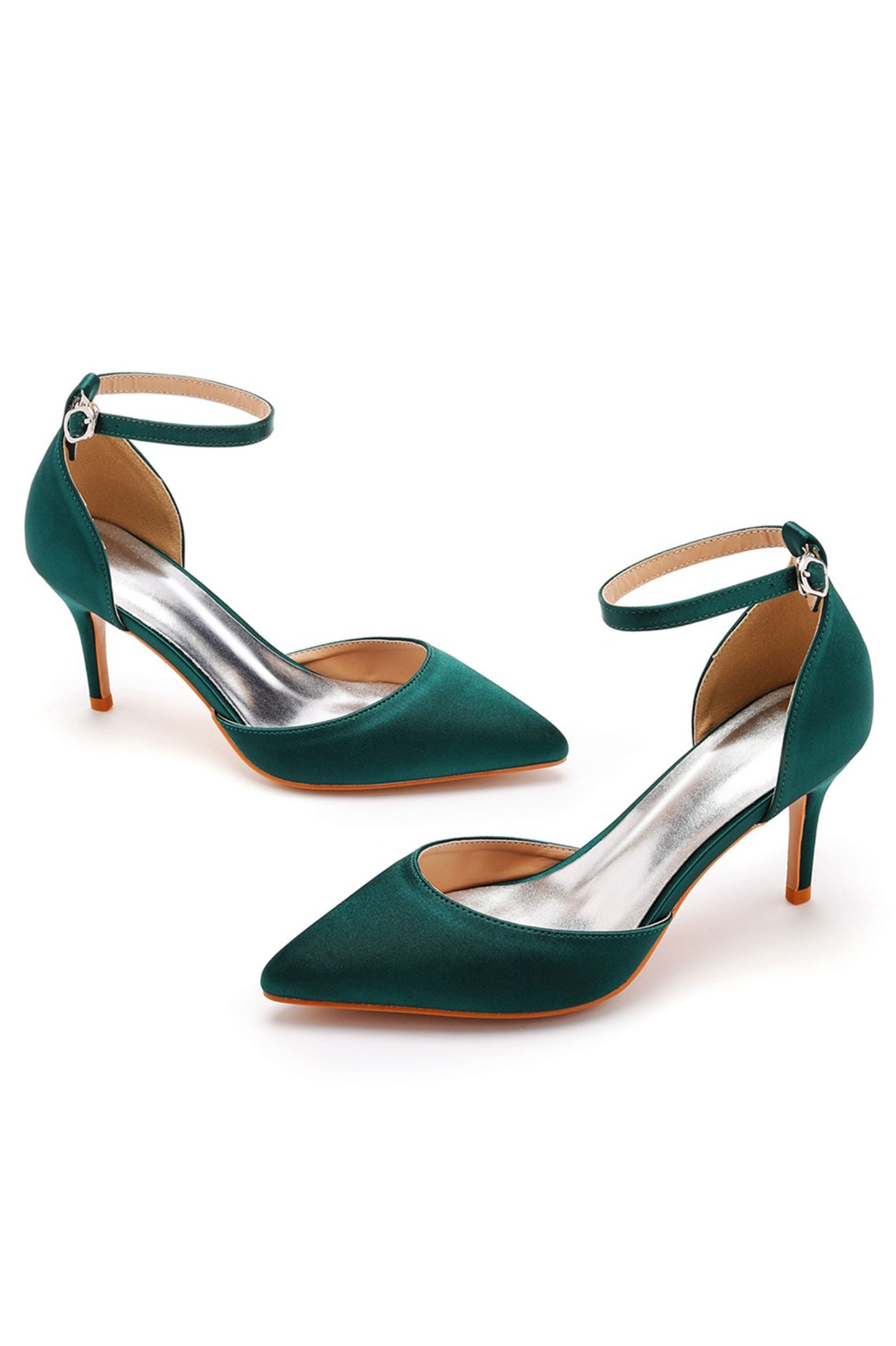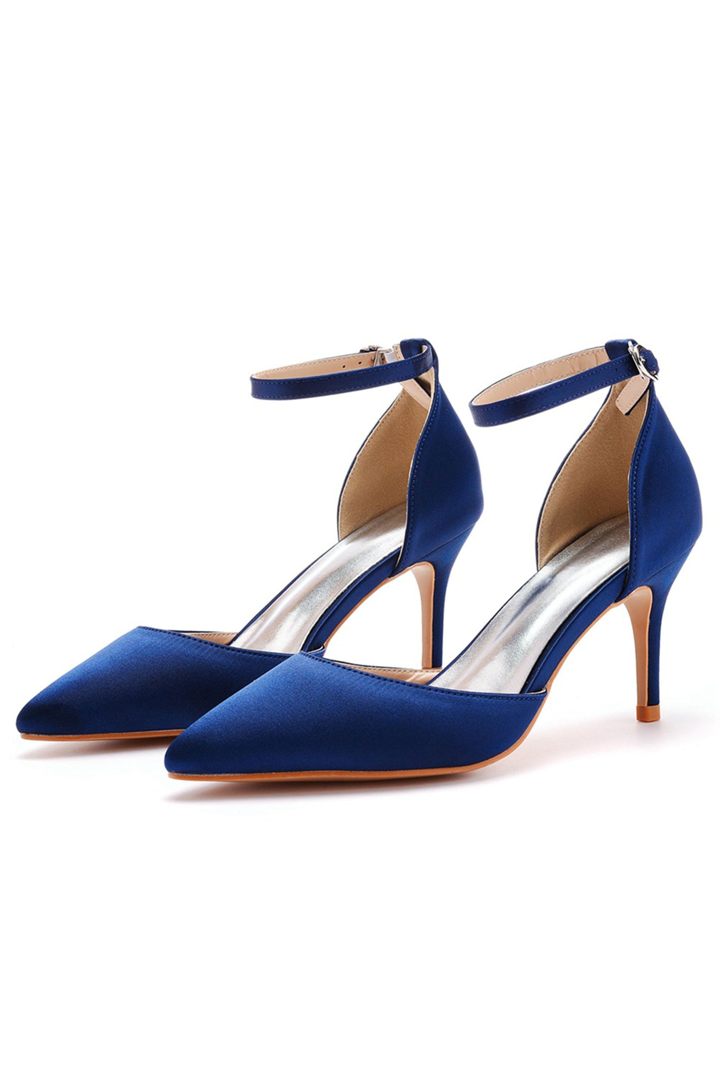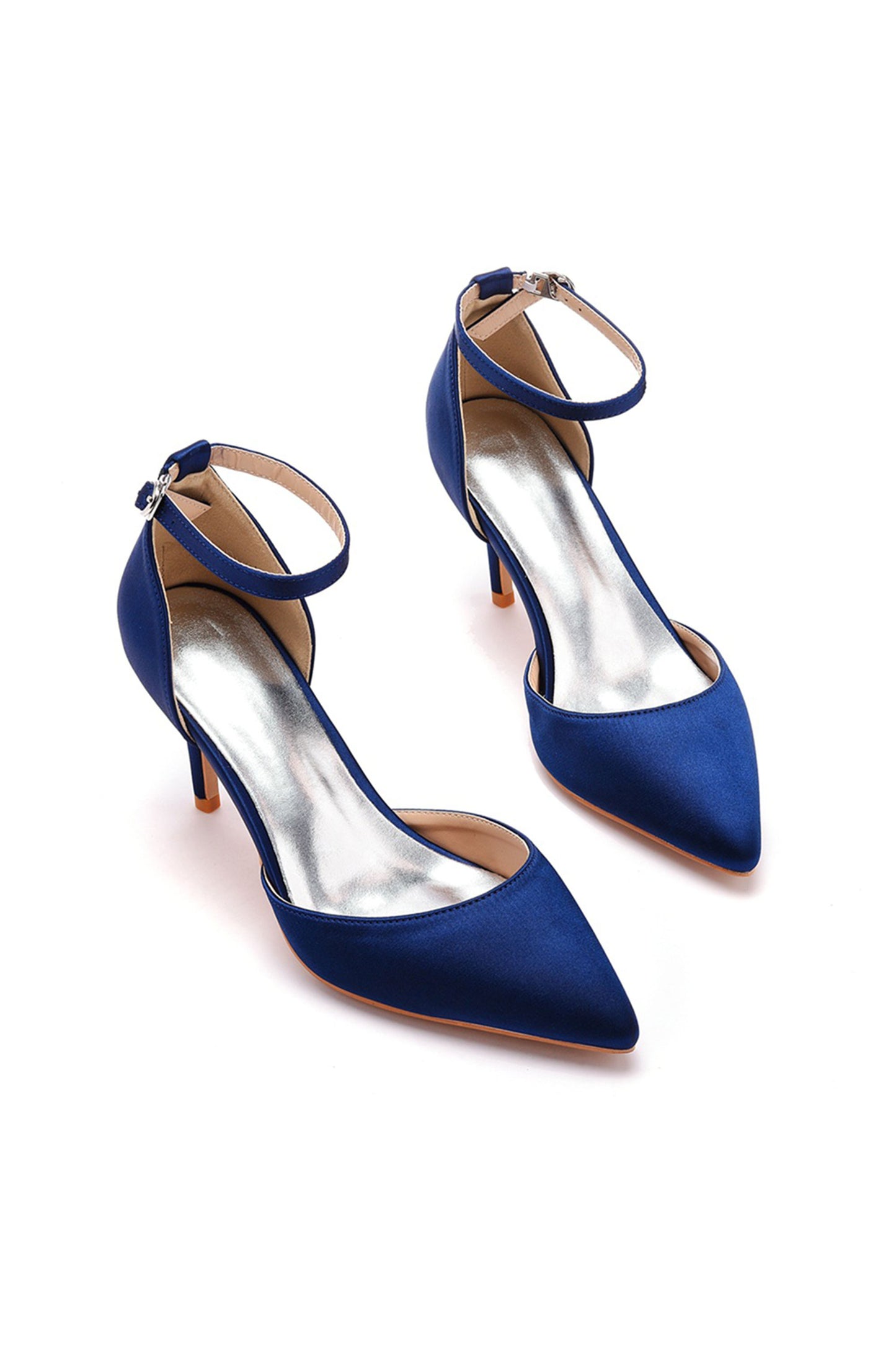 Elevate your elegance with our bridal satin shoes. These stiletto heels exude sophistication, featuring a pointed toe for a timeless touch. The one-strap buckle closure adds a chic flair, ensuring a secure and stylish fit. Step into grace and charm with these ankle strap sandals.
