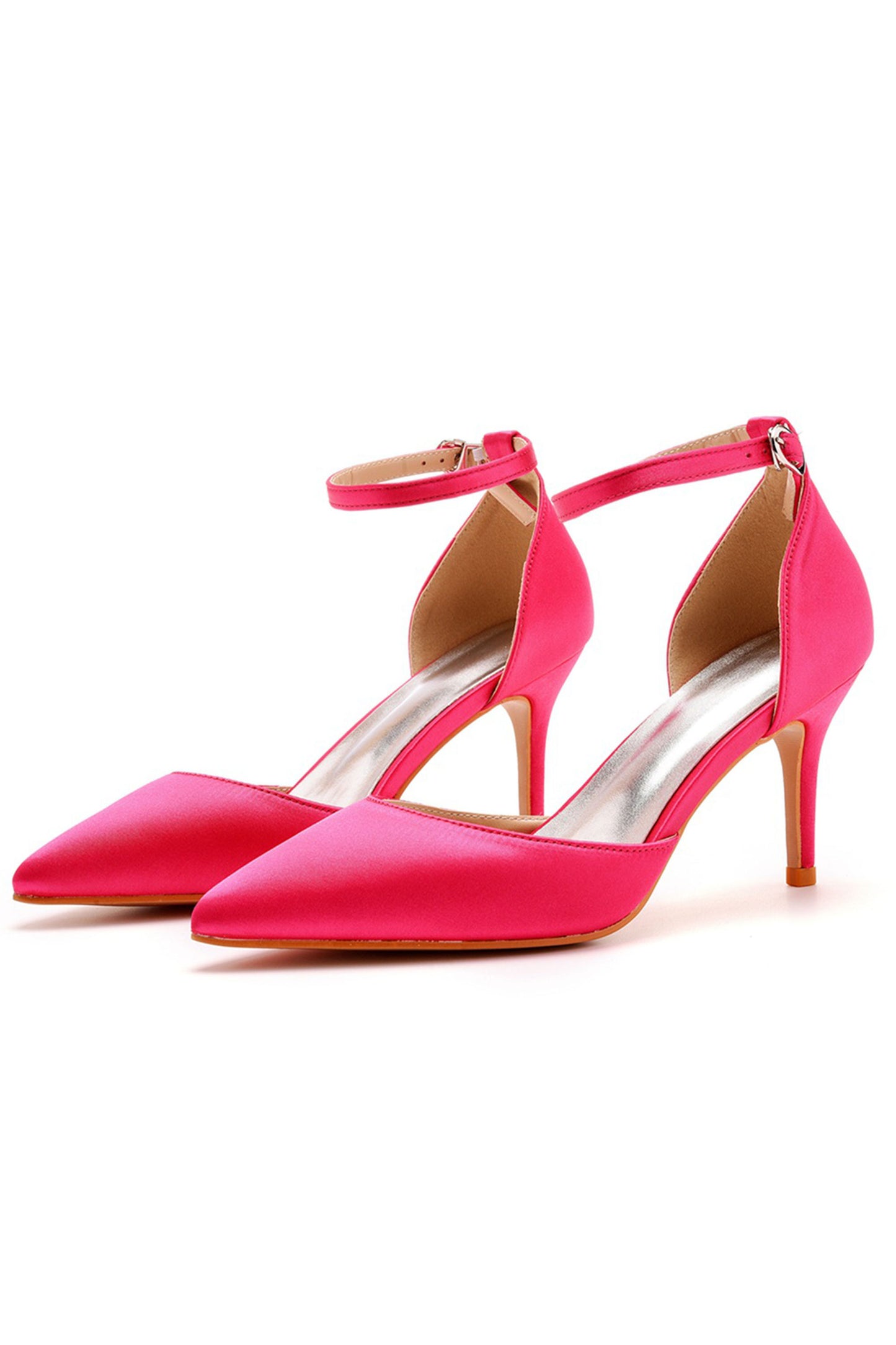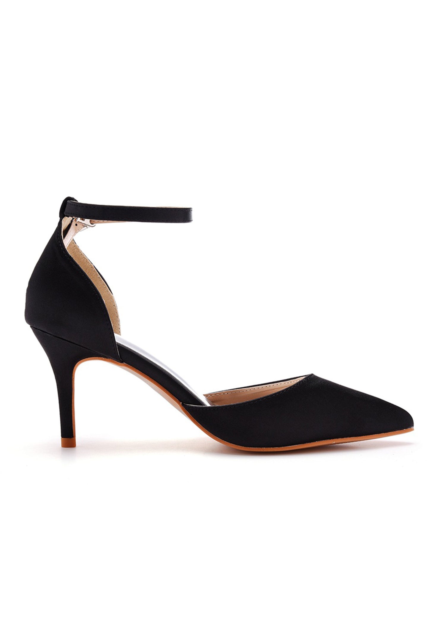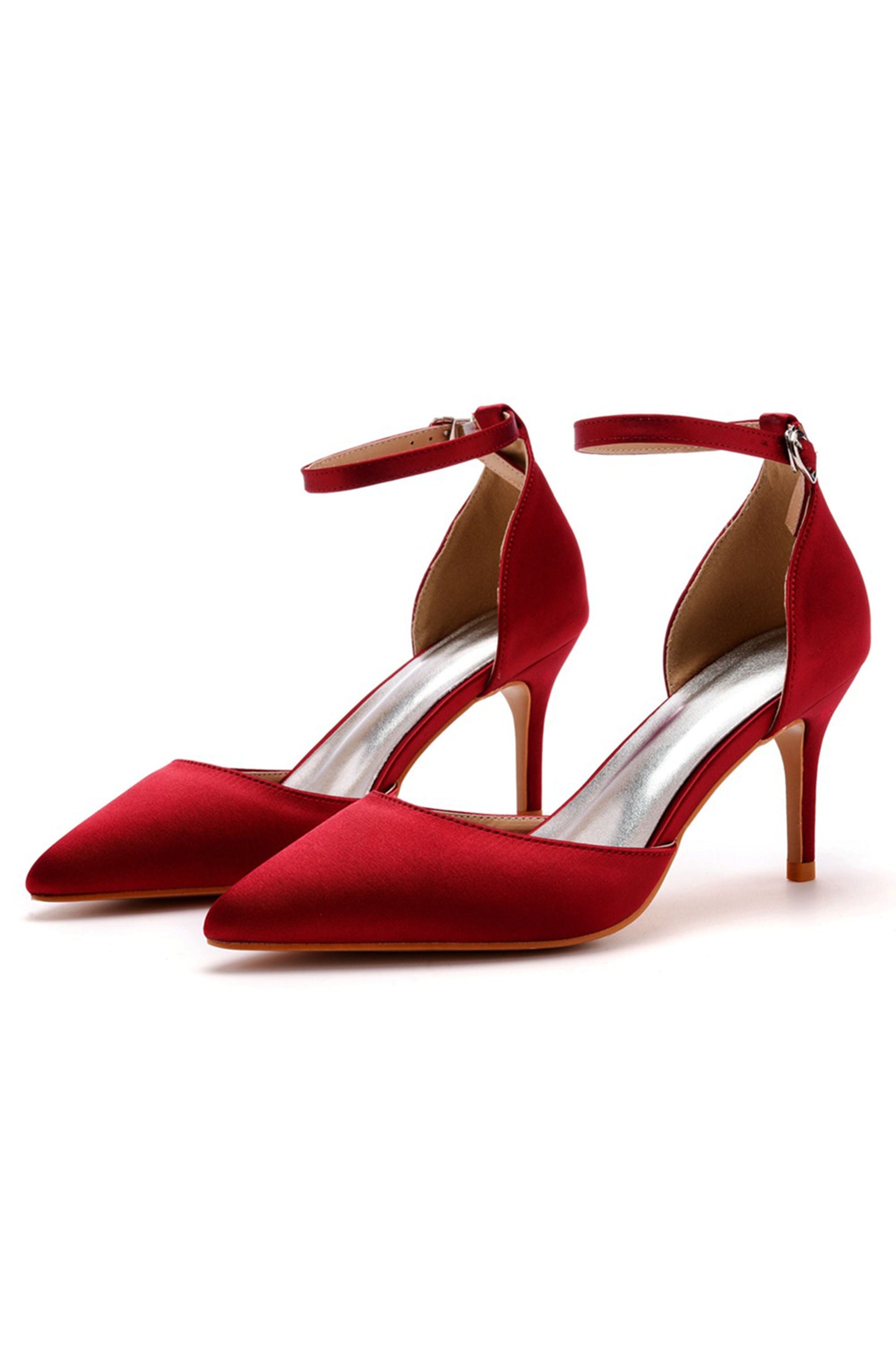 Elevate your elegance with our bridal satin shoes. These stiletto heels exude sophistication, featuring a pointed toe for a timeless touch. The one-strap buckle closure adds a chic flair, ensuring a secure and stylish fit. Step into grace and charm with these ankle strap sandals.