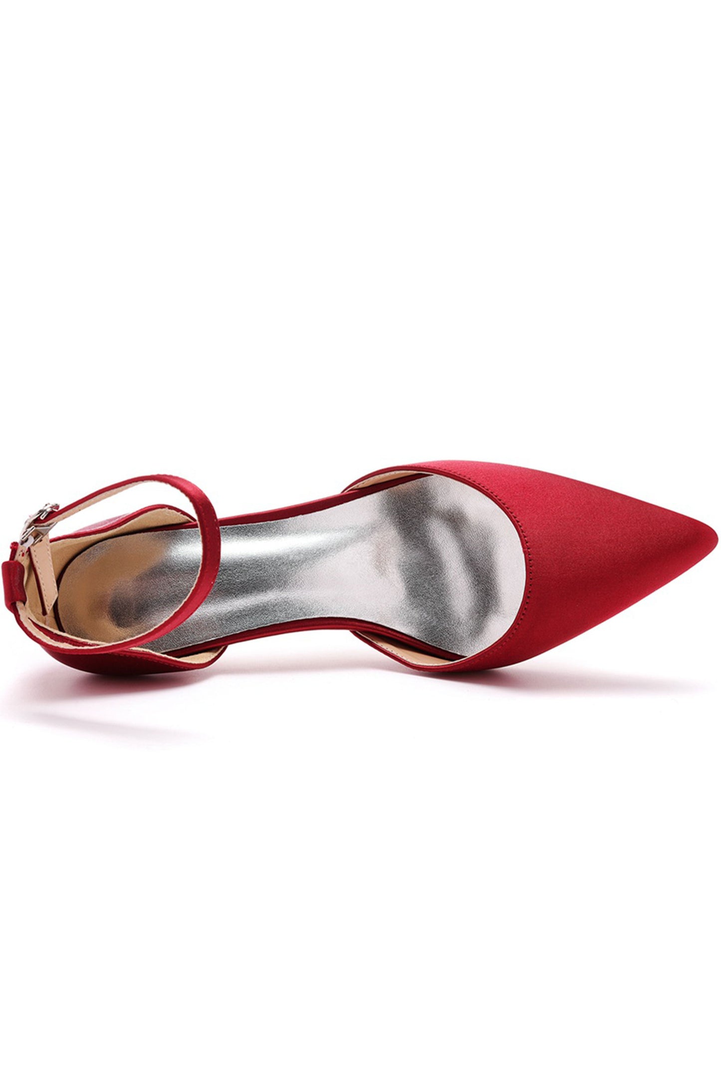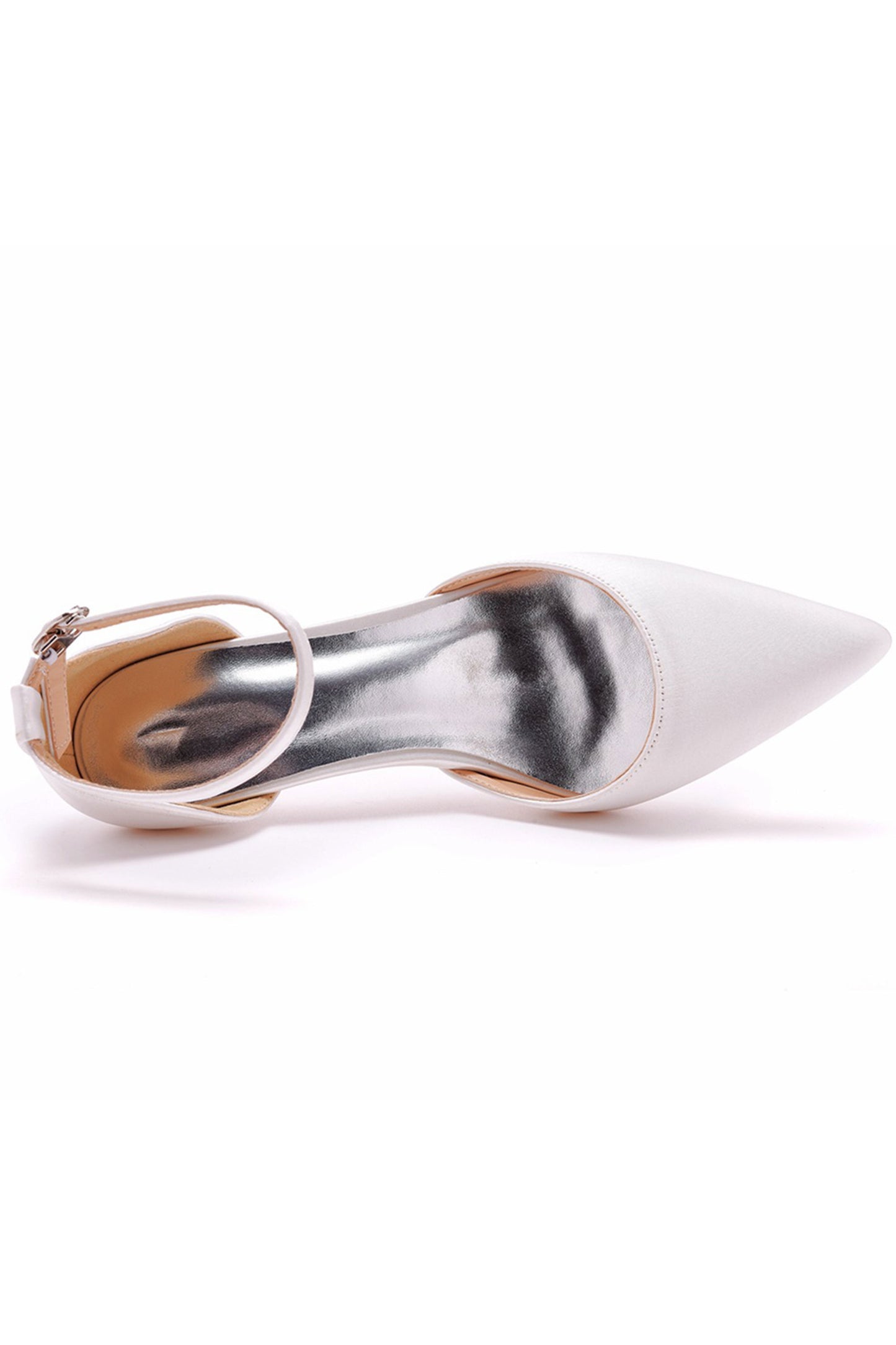Elegant Bridal Satin Shoes Pointed Toe Ankle Strap Buckle Sandals