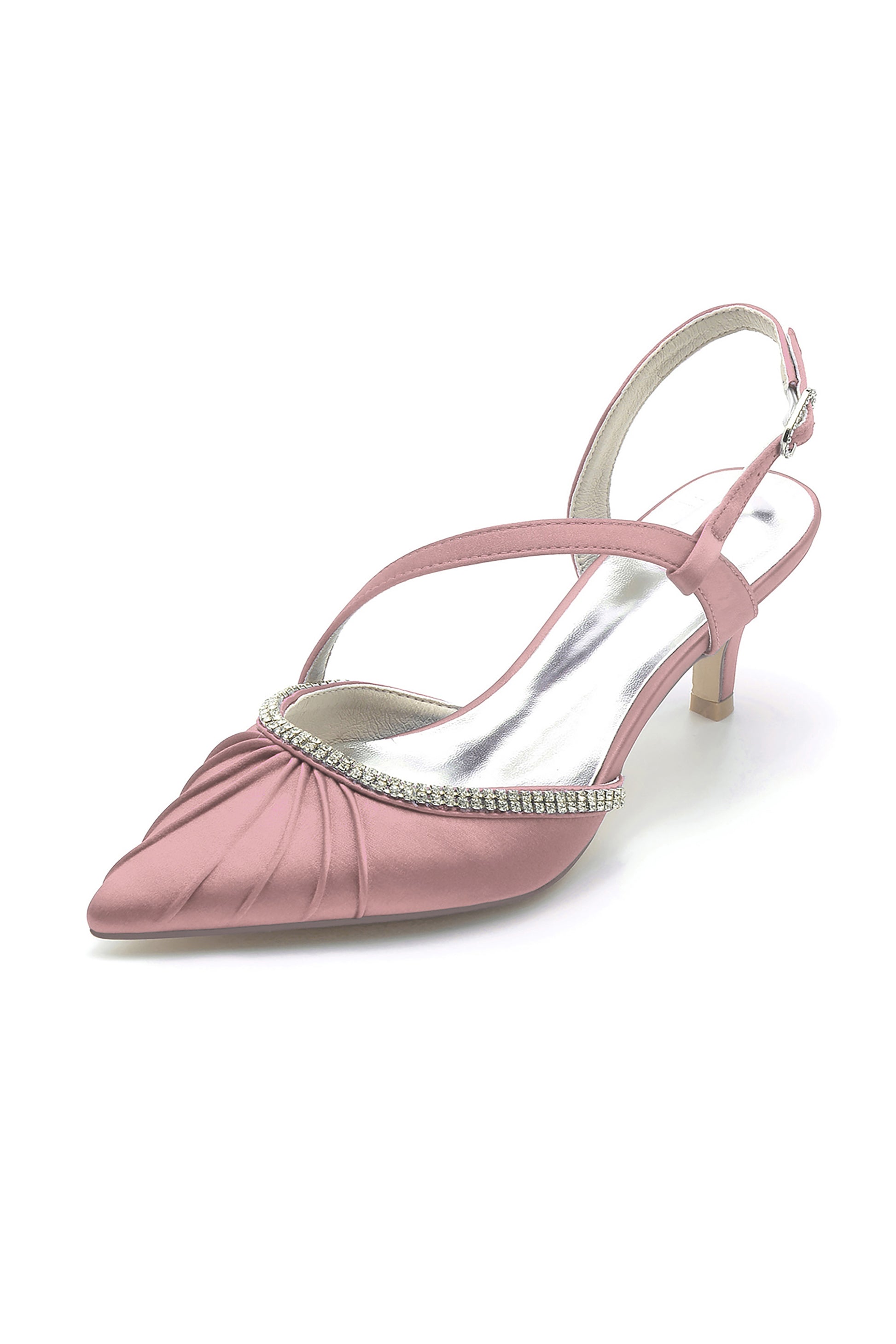 Featuring exquisite pleated detailing and shimmering rhinestones, these shoes offer a luxurious touch to your ensemble. The slingback design ensures a secure fit, while the pointed toe silhouette adds a touch of sophistication.