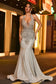 A dazzling combination of luxury and glamour. This dress features a figure-enhancing mermaid silhouette that hugs the body. The halter neckline adds a chic, modern touch, while the backless design creates an alluring effect. Intricate rhinestone, beaded, and applique embellishments catch the light beautifully.