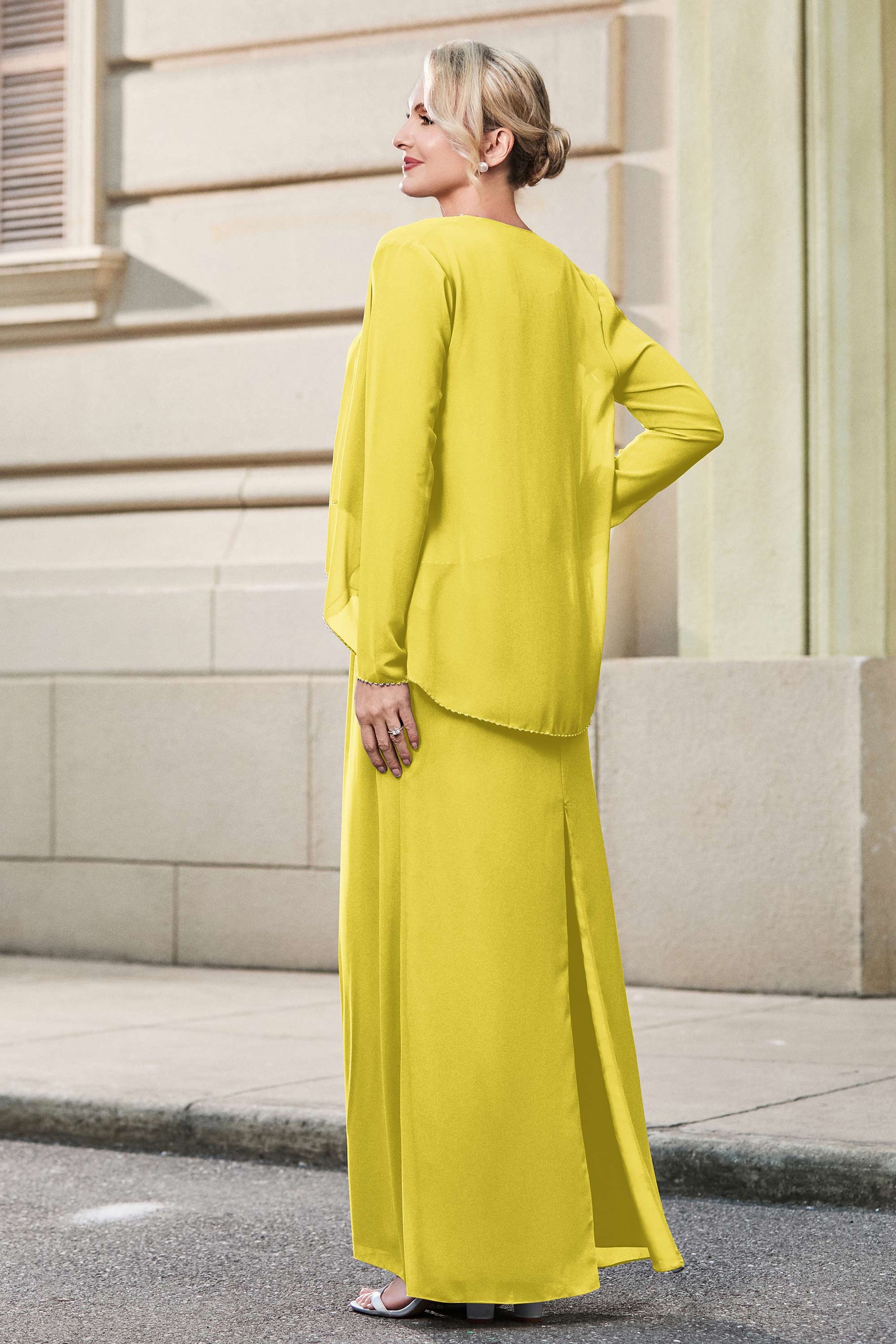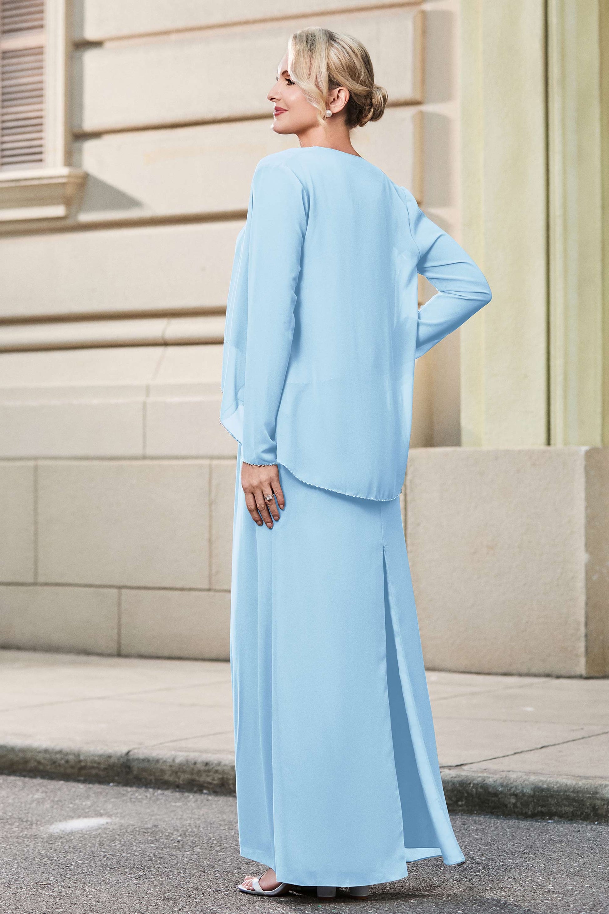 Scoop Neck Chiffon Pants Skirt With Jacket