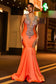 Sheer Bodice Rhinestone Mermaid Sweep Train Gown