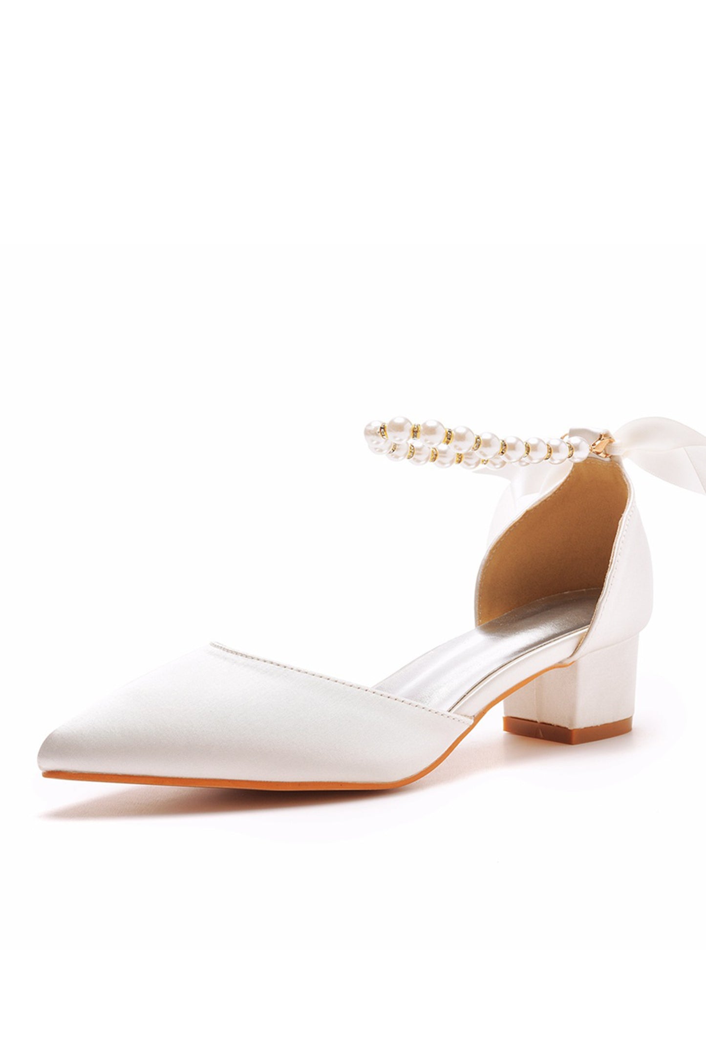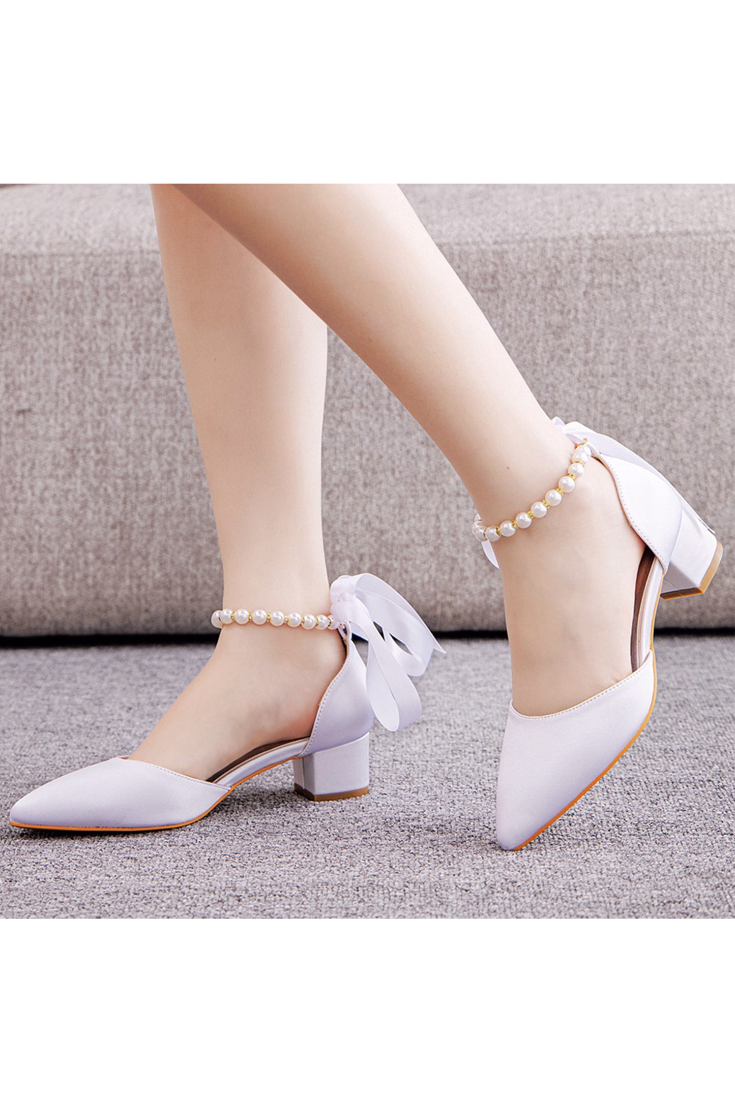Sweeten your style with our chunky heels mid heels. Adorned with a charming bowknot, ribbon, and pearls, these mid-height heels combine sweetness and sophistication. The pointed toe adds a touch of refinement, making them a delightful choice for various occasions, from parties to celebrations.