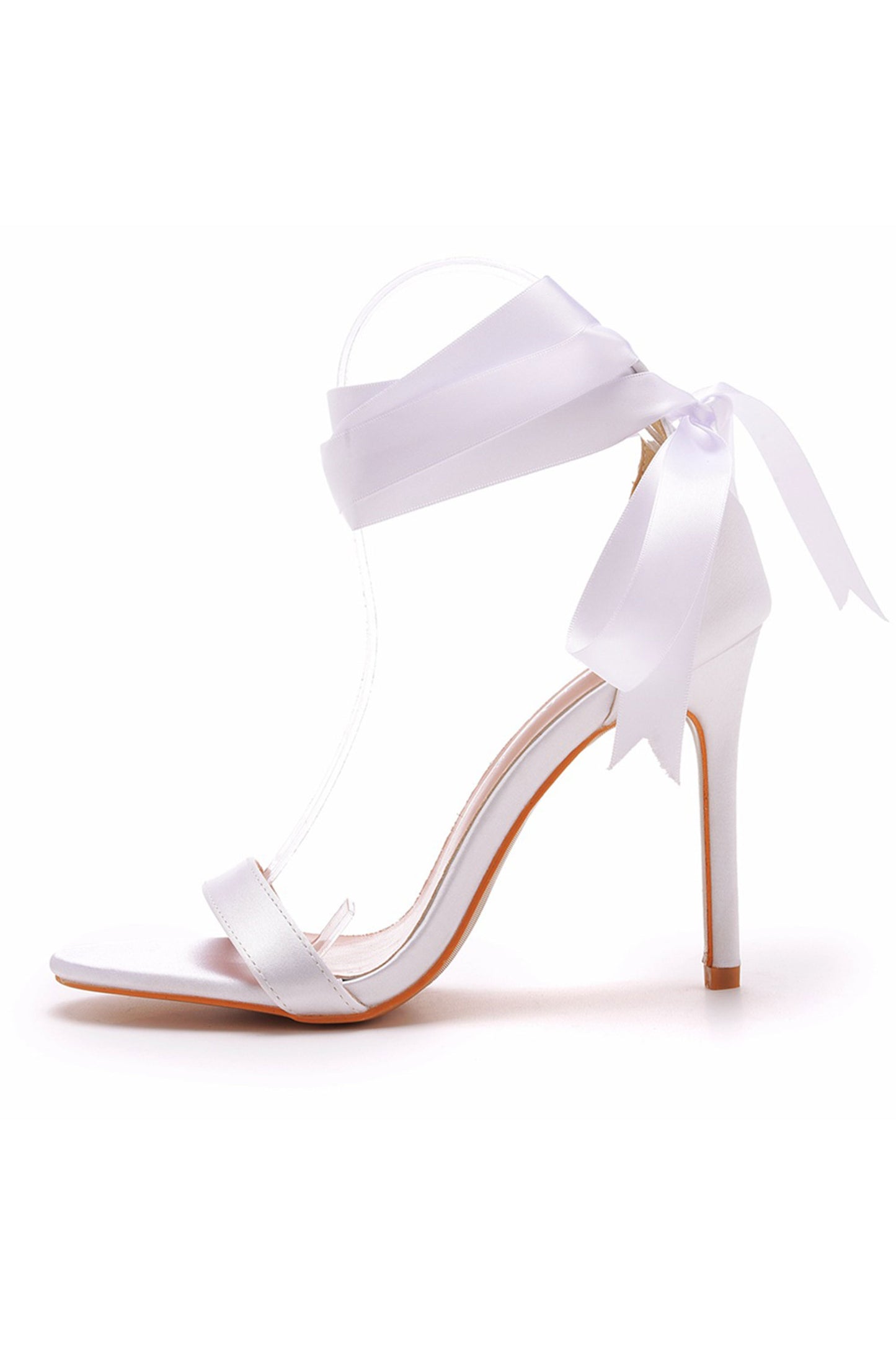 Step into sophistication with our satin peep toe high-heeled sandals featuring long straps. The elegant design showcases the perfect blend of style and grace, with a peep toe for a hint of allure. Adorned with satin and secured with long straps, these stiletto heels offer a glamorous and modern look.